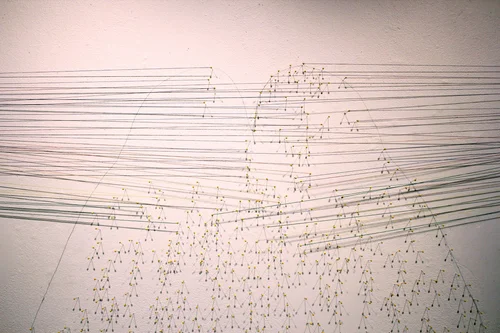 My show, Somewhere Over the Bifrost (Critical Mass), ruminates on consciousness and its horizon. I have chosen to illustrate how personal meaning can be created from a variety of tangential epistemological content and contexts, experiences, memories, and subjective impressions of the world. I have therefore structured this exhibition as an installation wherein the viewer in the gallery exists within a mind, caught between the mind/brain dichotomy, between creativity and analytic structure, and between competing narratives. This exhibition will then show how a person's subjective impression of the world can in reality be a horizon of human becoming.